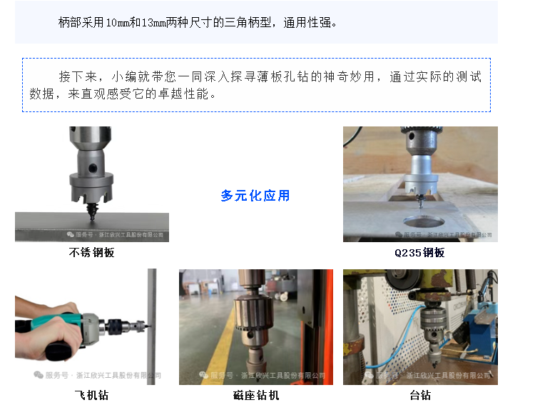 薄板孔鉆,是創恒自主研發的一款薄型材料孔加工刀具,可以安裝在普通電鉆或臺鉆等設備上對銅、鐵、不銹鋼、有機玻璃等各種材料制成的板材進行加工。